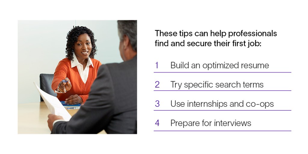 With a solid resume detailing their experience, skills and education, individuals can start applying to engineering roles. These tips can help professionals find and secure their first job: